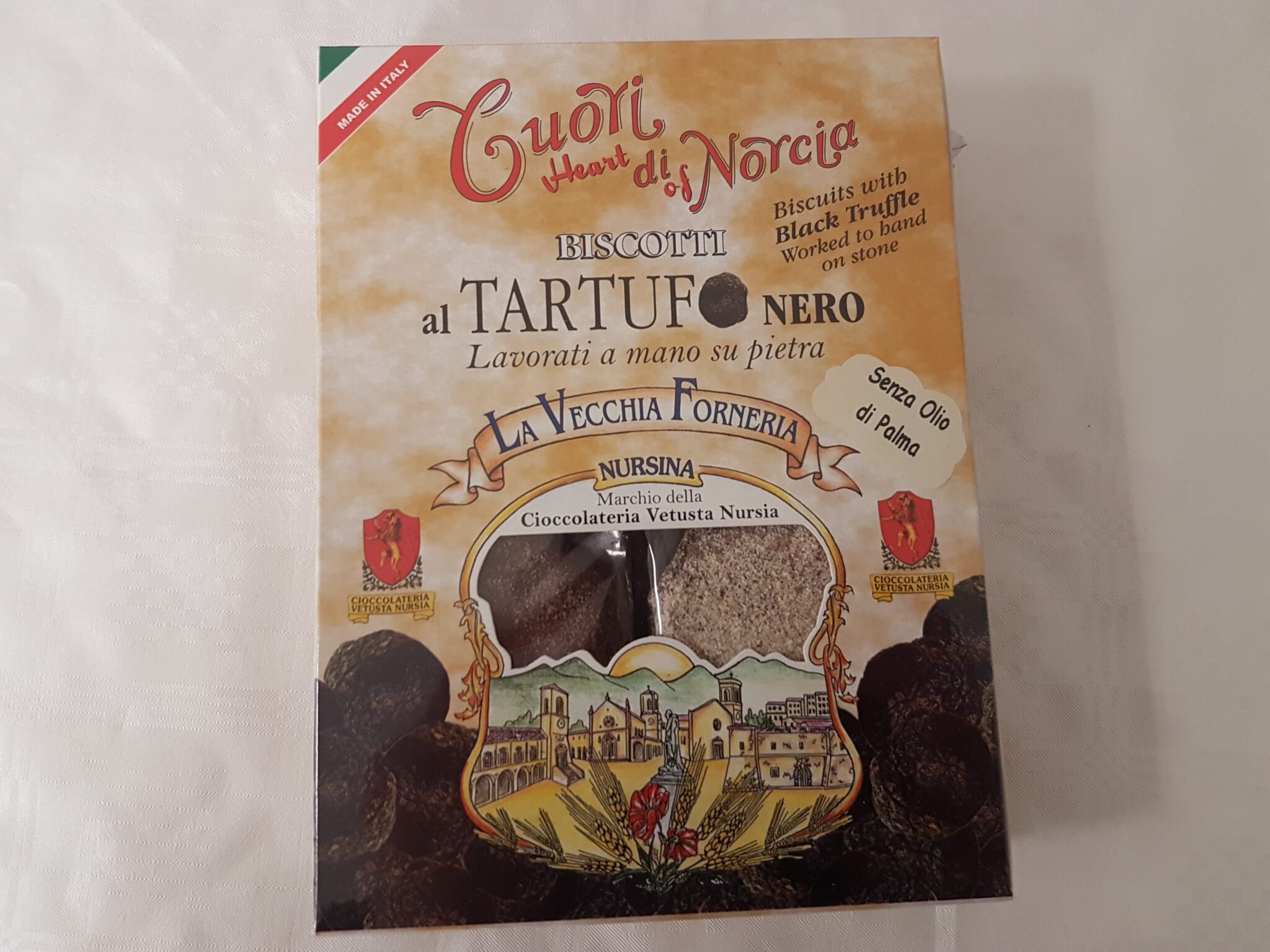 I Biscotti Cuori di Norcia al Tartufo Nero sono prodotti dalla Cioccolateria di Norcia Vetusta Nursia sono confezione in una scatola di cartone e all’interno i biscotti sono confezionati singolarmente, e possono essere utilizzato come regalo da donare ad amici o parenti, oppure puoi semplicemente gustarla direttamente a casa.