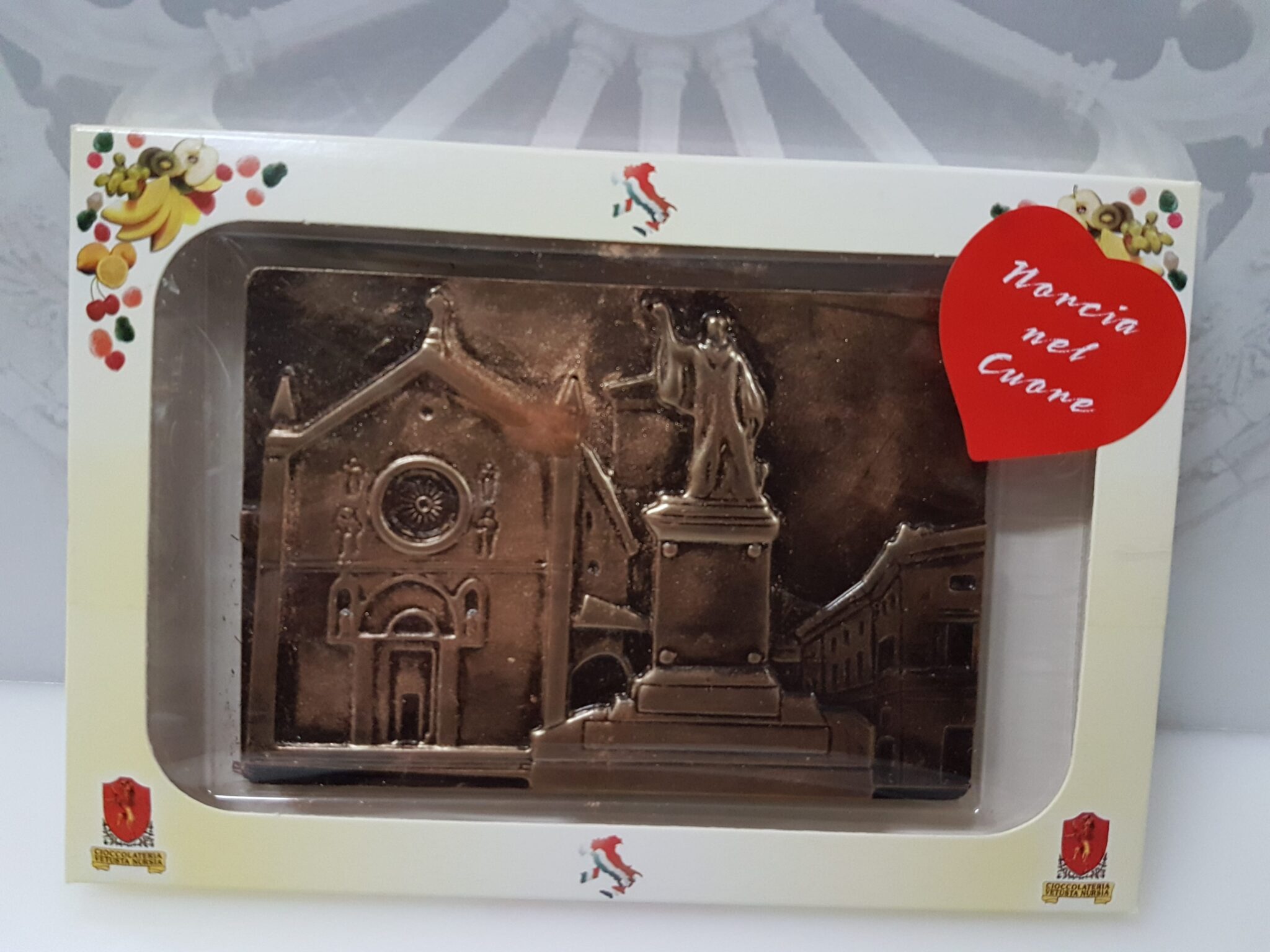 La Tavoletta Cioccolata Piazza San Benedetto è una tavoletta di cioccolato decorata e lavorata in rilievo che raffigura la Piazza di San Benedetto di Norcia in tutto il suo splendore.