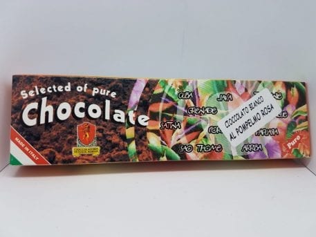 La Tavoletta Cioccolato Bianco Pompelmo Rosa è prodotta dalla Cioccolateria di Norcia Vetusta Nursia, è confezionata in un’elegante astuccio di cartone e il suo peso è di 150 gr